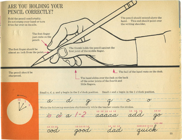 Rankos nevarginimas visgi nėra vienintelis pliusas išmokus taisyklingai suimti rašiklį. Daug ryškesnis pliusas tas, kad, kadangi ranka labiau atpalaiduota, galima žymiai GREIČIAU rašyti ir, be to, tokiu būdu PAGRAŽINTI SAVO RAŠYSENĄ. Tai ypač gerai veikia išmokius dar mažus vaikus. Taisyklingai laikančių parkerį vaikų raštas išliks gražus ir suaugus. Sakydama “gražus” neturiu galvoje kažkokio kaligrafinio dailyraščio – tiesiog raštas bus įskaitomas ir todėl nekils jokių nesklandumų per egzaminus vien dėl to, kad mokytojai/dėstytojai negalės įskaityti rašto. Taigi štai visai graži schemelė, KAIP TAISYKLINGAI LAIKYTI RAŠIKLĮ: